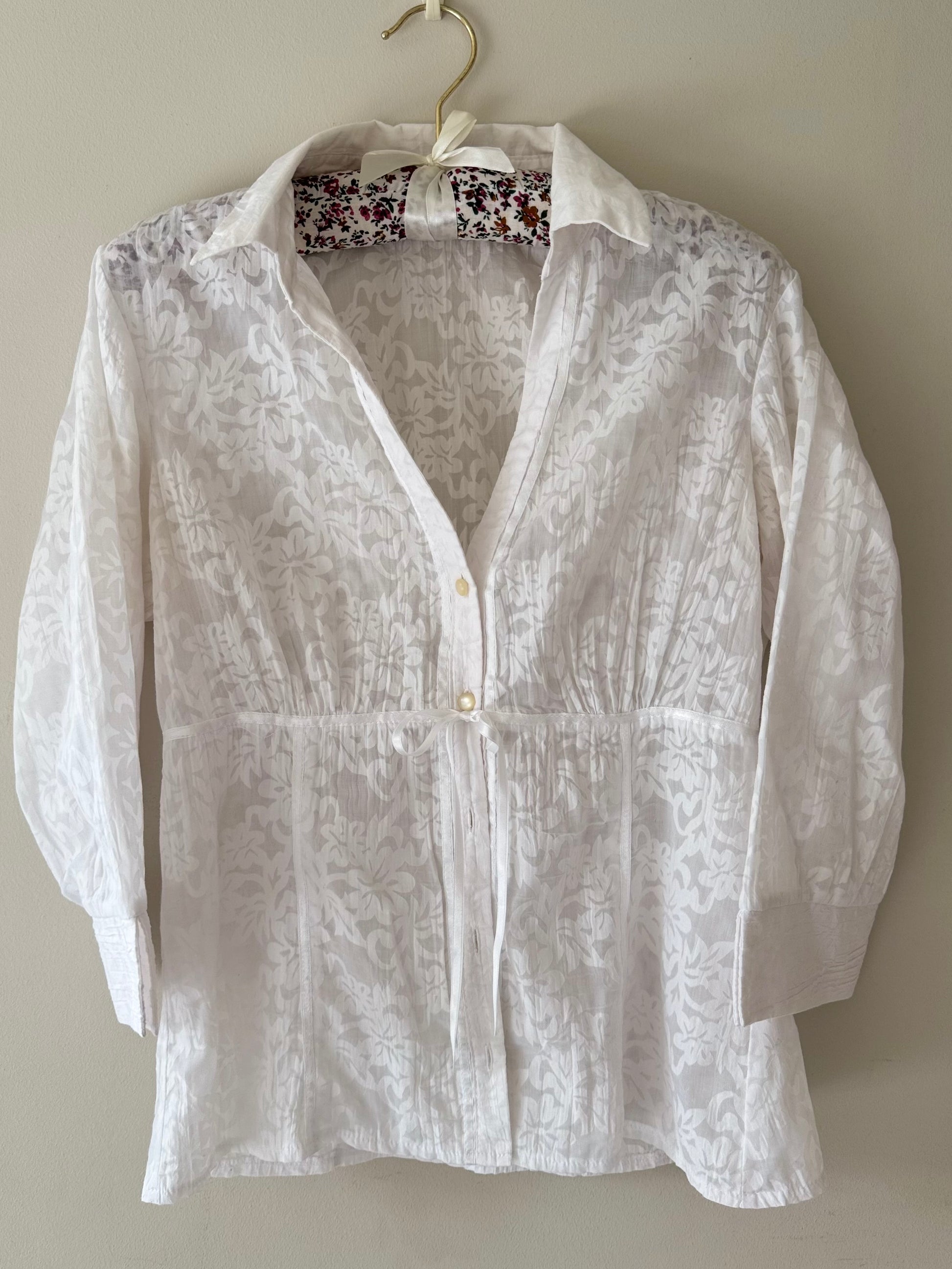 A charming boho-inspired blouse that effortlessly elevates any look. Style it with denim jeans and bold accessories for a playful touch, or pair with a linen skirt and kitten heels for understated elegance. Its sheer fabric lends itself to layering — wear with a delicate bralette or cami, depending on your mood.