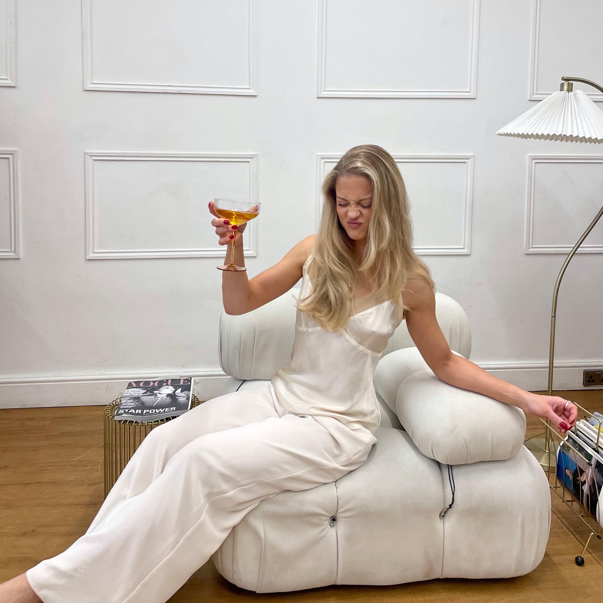 Delicate and refined, the Champagne Silk Cami is crafted from a soft, lustrous silk style fabric in a flattering champagne hue. Featuring slender straps and a subtle V-neckline, it’s the perfect layering piece for elegant evenings or festive occasions. Pair it with satin trousers or a tailored blazer for an effortlessly timeless look.