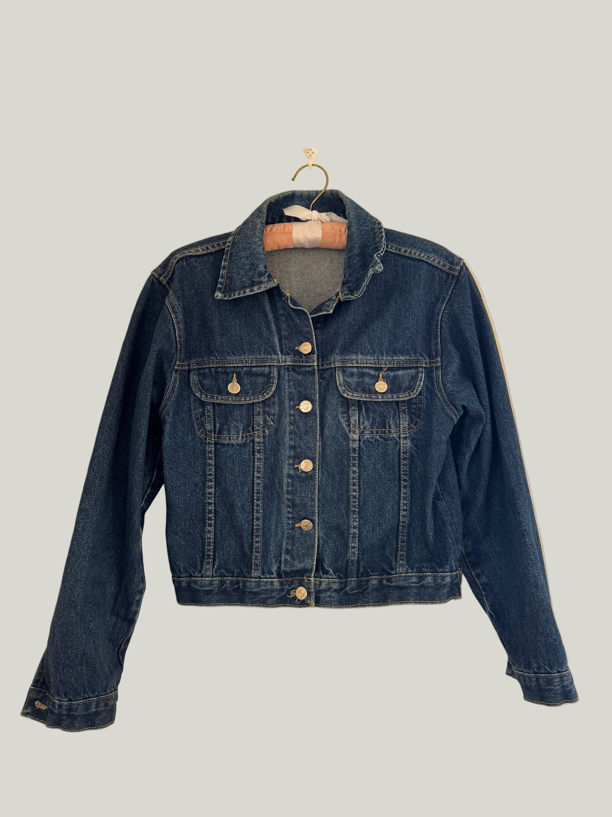 A timeless wardrobe essential, this dark wash denim jacket features a button-up front, twin chest pockets with button flaps, and a relaxed fit. Versatile and effortlessly cool, it’s perfect for layering across all seasons.
