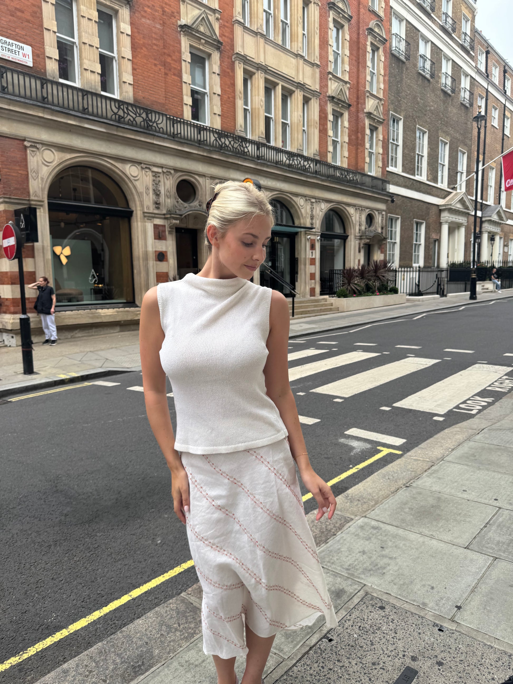 Elevate your wardrobe with this elegant high neck knitted top. Crafted from a soft, breathable knit fabric, this sleeveless piece features a cozy cowl neckline and a flattering, relaxed fit. Perfect for layering or wearing solo, its minimalist design makes it a versatile staple for both casual and chic ensembles. The neutral off-white tone pairs effortlessly with any outfit, making it a must-have for timeless style.