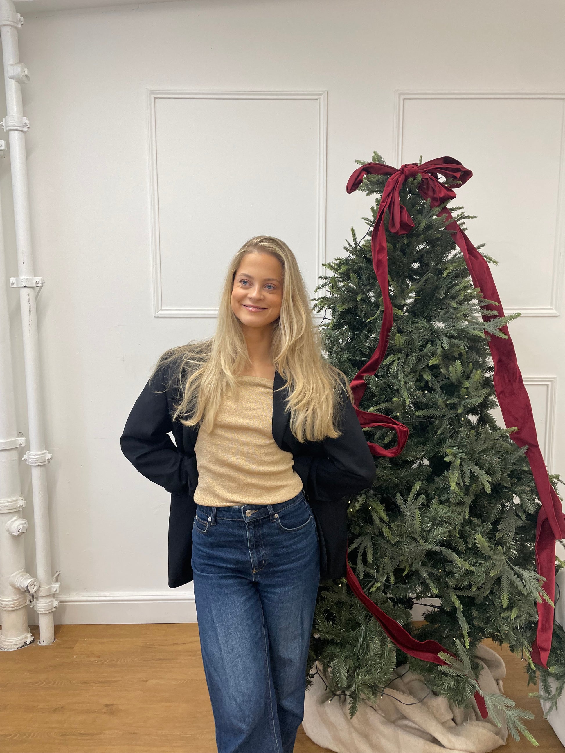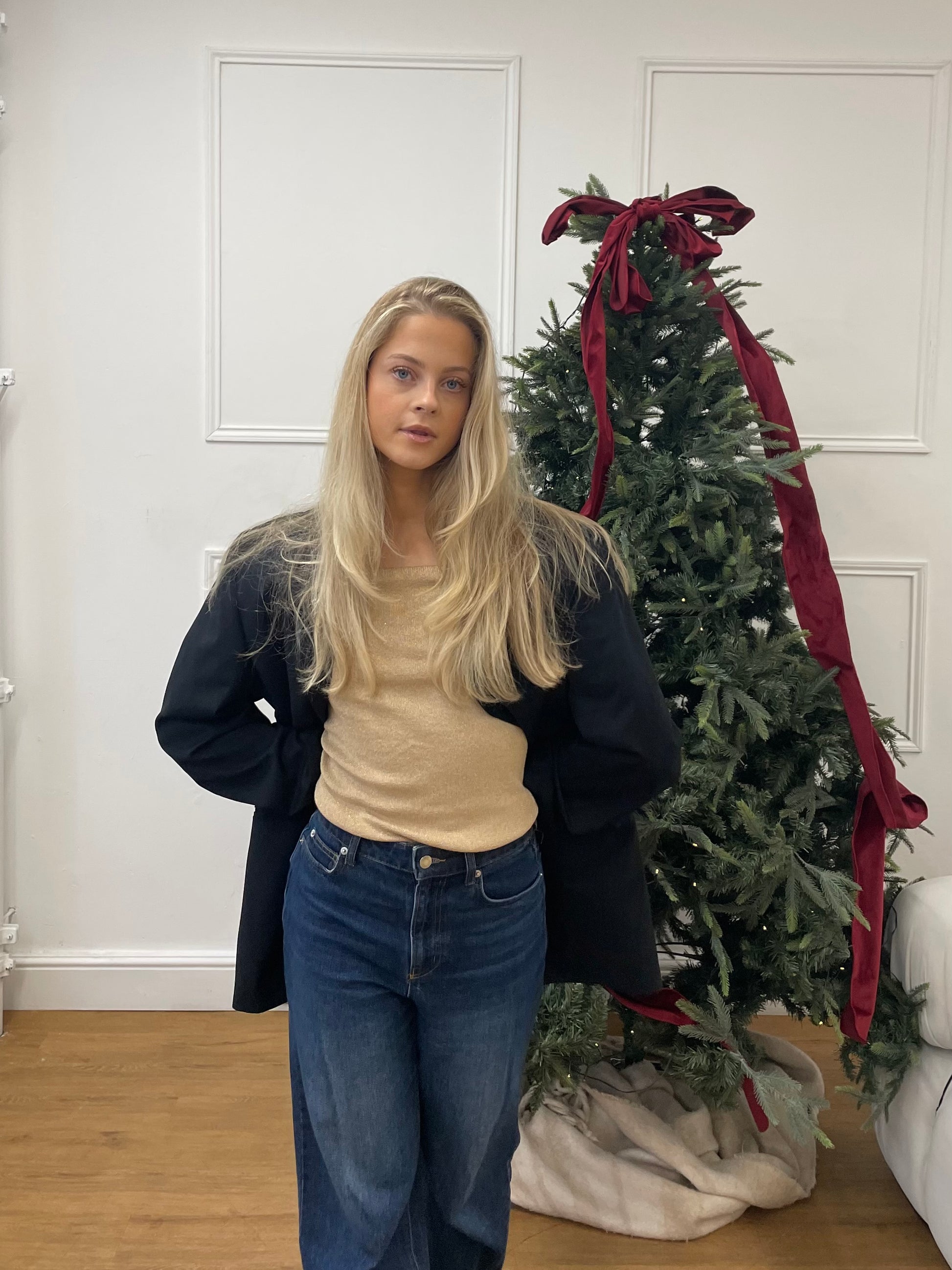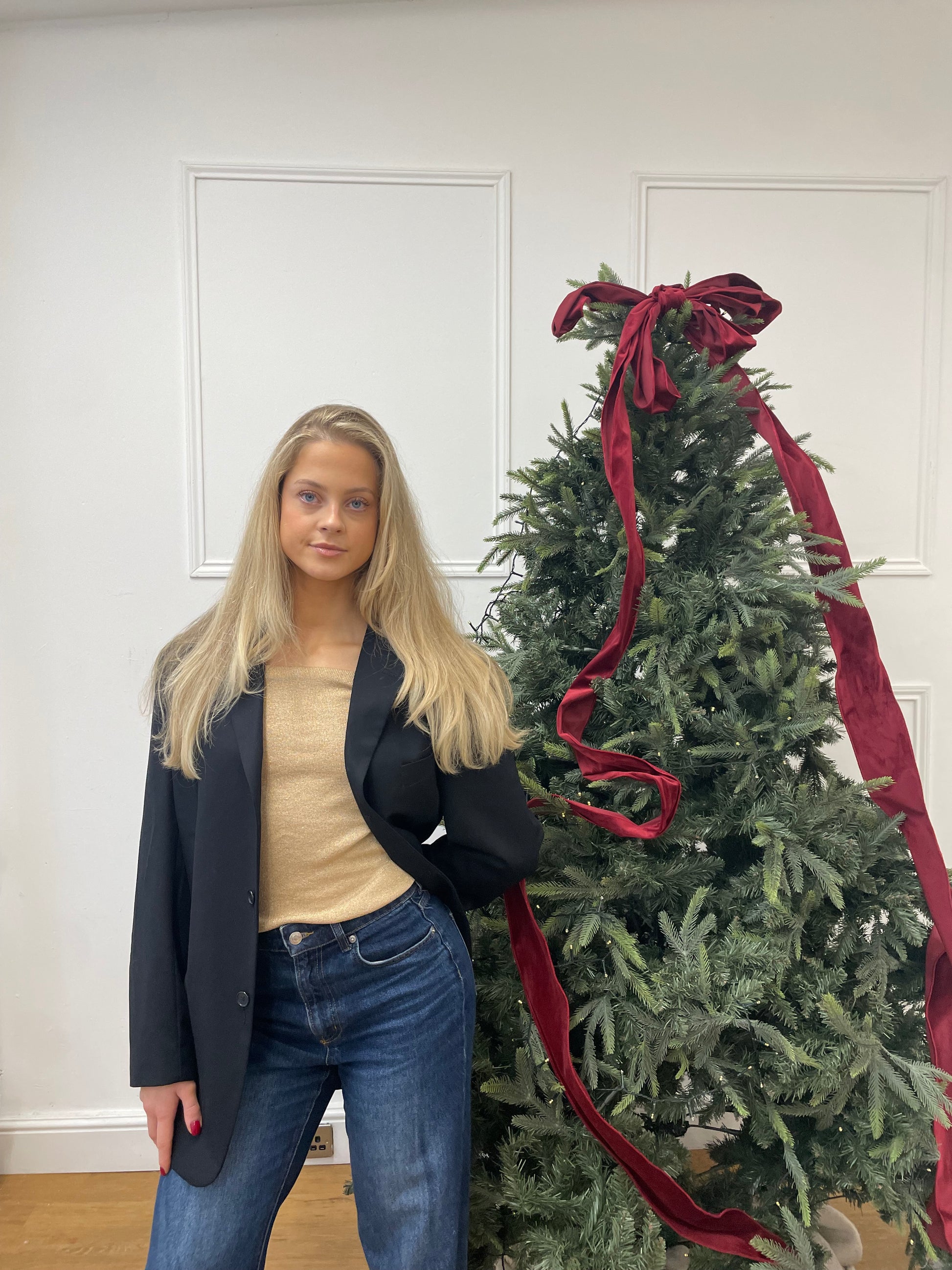 A sleek, oversized black blazer designed for effortless holiday elegance. Its clean lines and relaxed fit make it the perfect layering piece for Christmas gatherings or New Year’s celebrations—timeless, versatile, and refined for every festive moment.