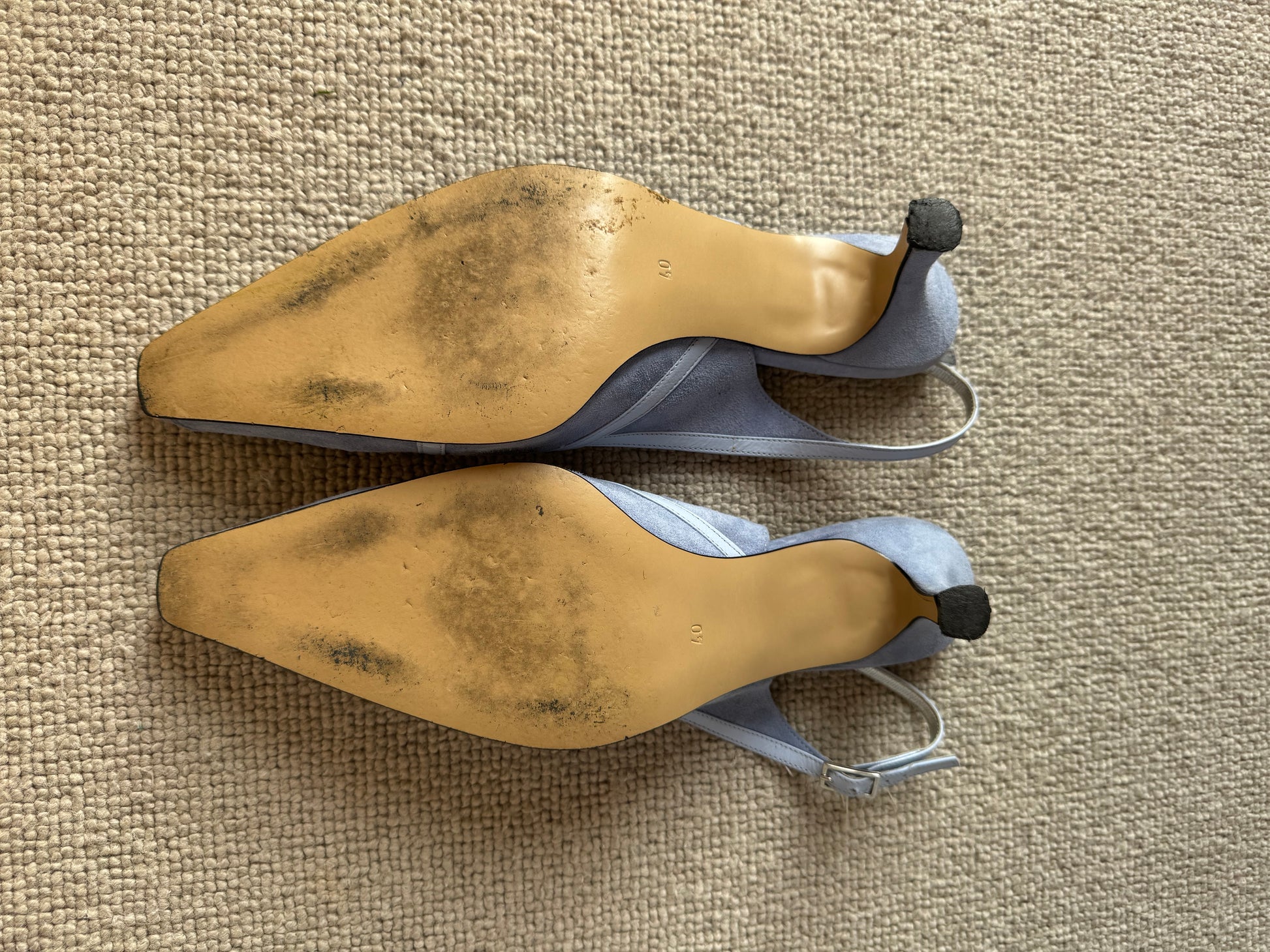 Pastel Blue Suede Kitten Heels with Slingback Strap (7)